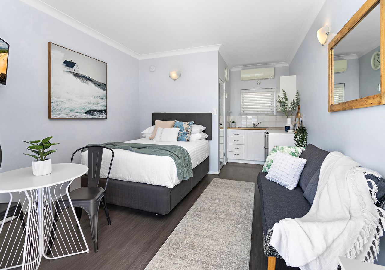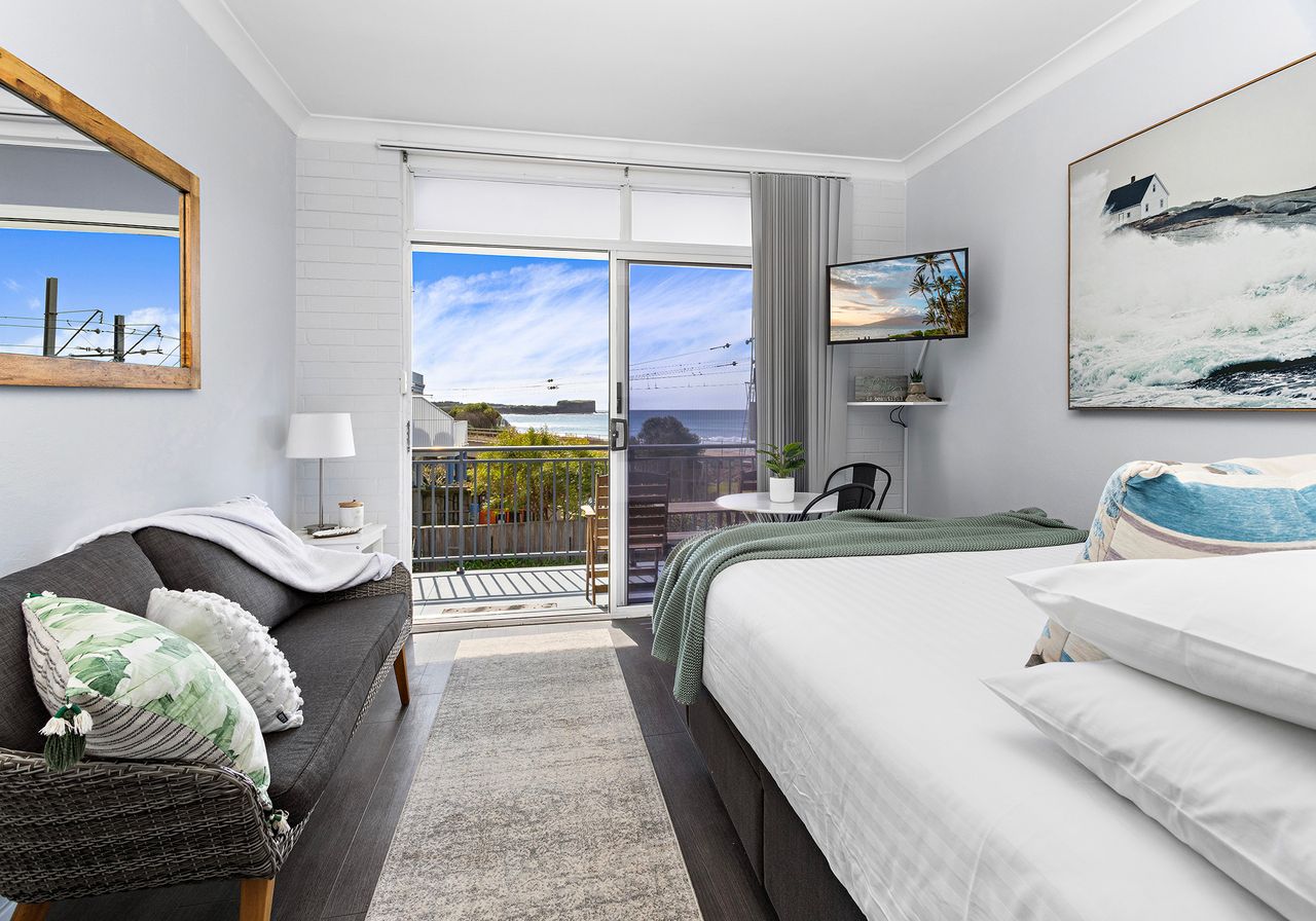 3 Experience a taste of coastal paradise at Bombo Breeze, a stunning holiday rental nestled in the heart of Kiama, NSW. This one-bedroom, one-bathroom apartment is specifically tailored for three guests, offering an intimate escape with unbeatable proximity to the ocean.
